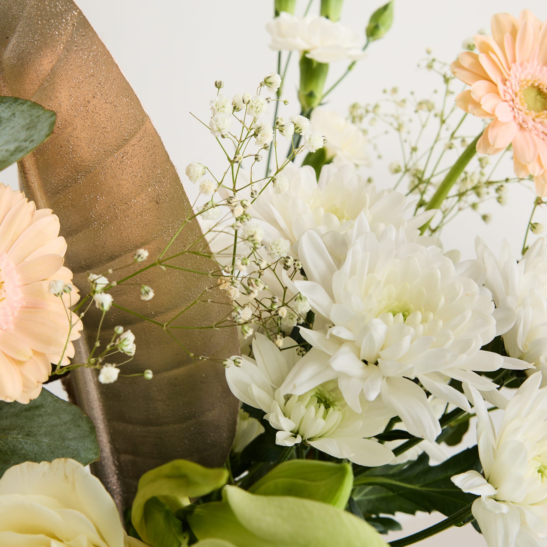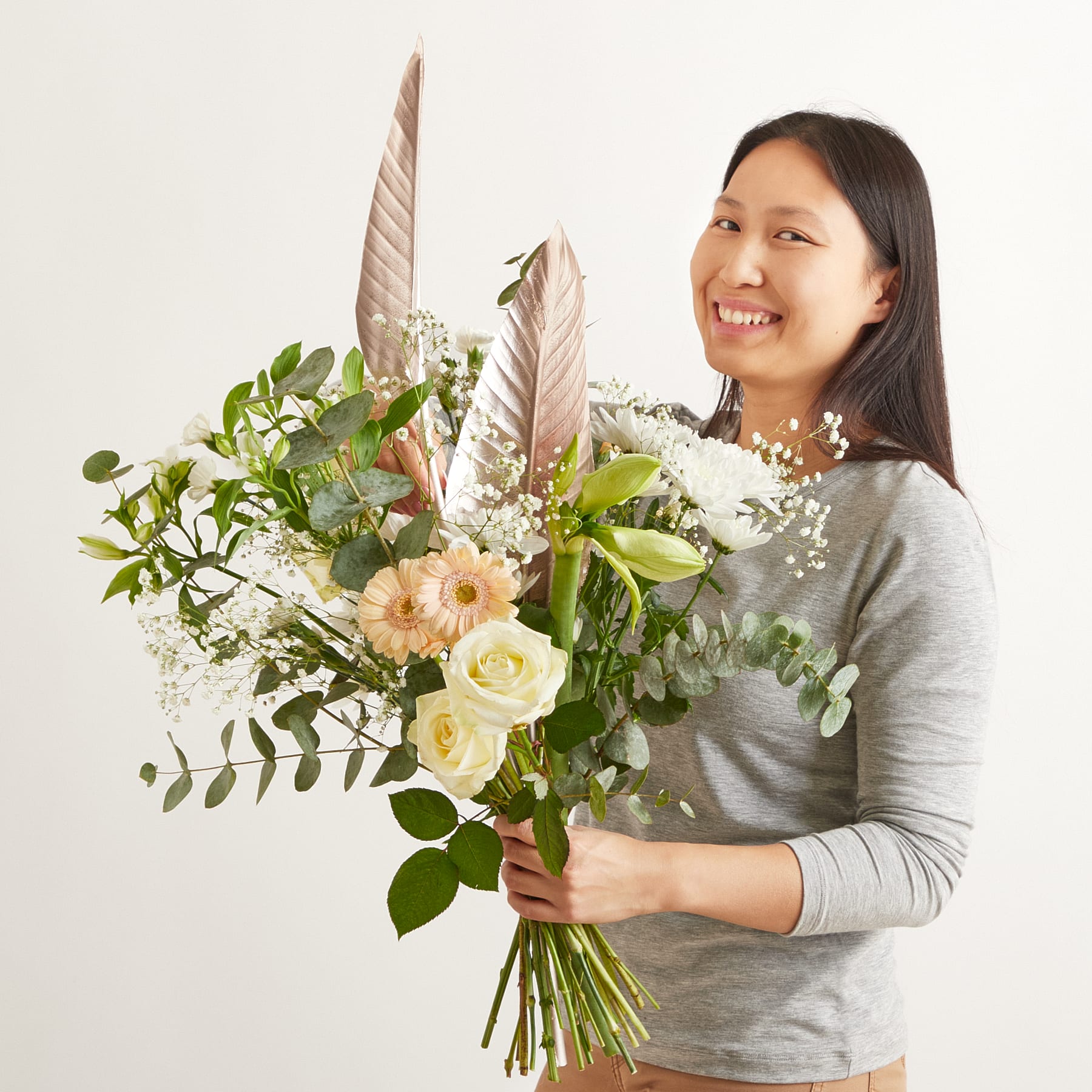 Frosty Elegance – ein Wiesenblumenstrauß, der winterliche Frische mit festlicher Anmut vereint. Edle Amaryllis und Rosen strahlen in harmonischer Schönheit, während Alstromerien, Nelken und Gerbera zarte Farbspiele zaubern, die an das Glitzern von Frost im Morgengrauen erinnern. Feines Schleierkraut und silbrig-grüner Eukalyptus verleihen dem Strauß Leichtigkeit und Eleganz, Pistazie sorgt für ein natürliches, weihnachtliches Grün. Mit Frosty Elegance verschenkst du ein Stück Winterpoesie – ein floraler Gruß, der Herzen erwärmt und Räume erstrahlen lässt. Perfekt für alle, die du in der schönsten Zeit des Jahres mit Liebe, Stil und einem Hauch frostiger Zauberschönheit überraschen möchtest.