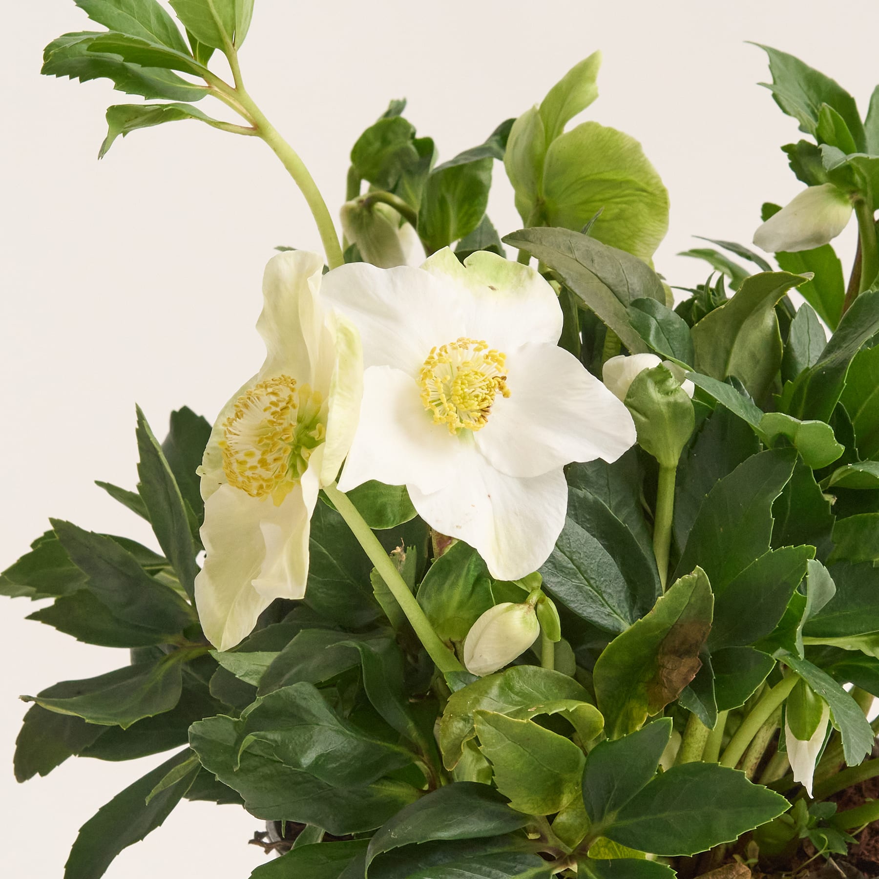 Ein sanftes Strahlen inmitten von Frost und Schnee: Die Christrose 'Wintergold' öffnet ihre schneeweißen Blüten, die durch goldgelbe Staubgefäße besonders warm wirken. Der Helleborus niger liebt halbschattige Standorte und gedeiht in humosem, gut durchlässigem Boden. Gleichmäßige Feuchtigkeit ohne Staunässe sorgt für eine lange Blütezeit von Dezember bis März. Diese winterharte Staude setzt leuchtende Akzente in frostigen Beeten, unter Gehölzen oder in dekorativen Kübeln. Die Christrose 'Wintergold' ist pflegeleicht, robust und bringt jedes Jahr verlässlich Farbe in die dunkle Jahreszeit. Ihre elegante Blüte verleiht selbst grauen Tagen eine festliche Note und macht sie zu einem echten Highlight für Garten und Terrasse.