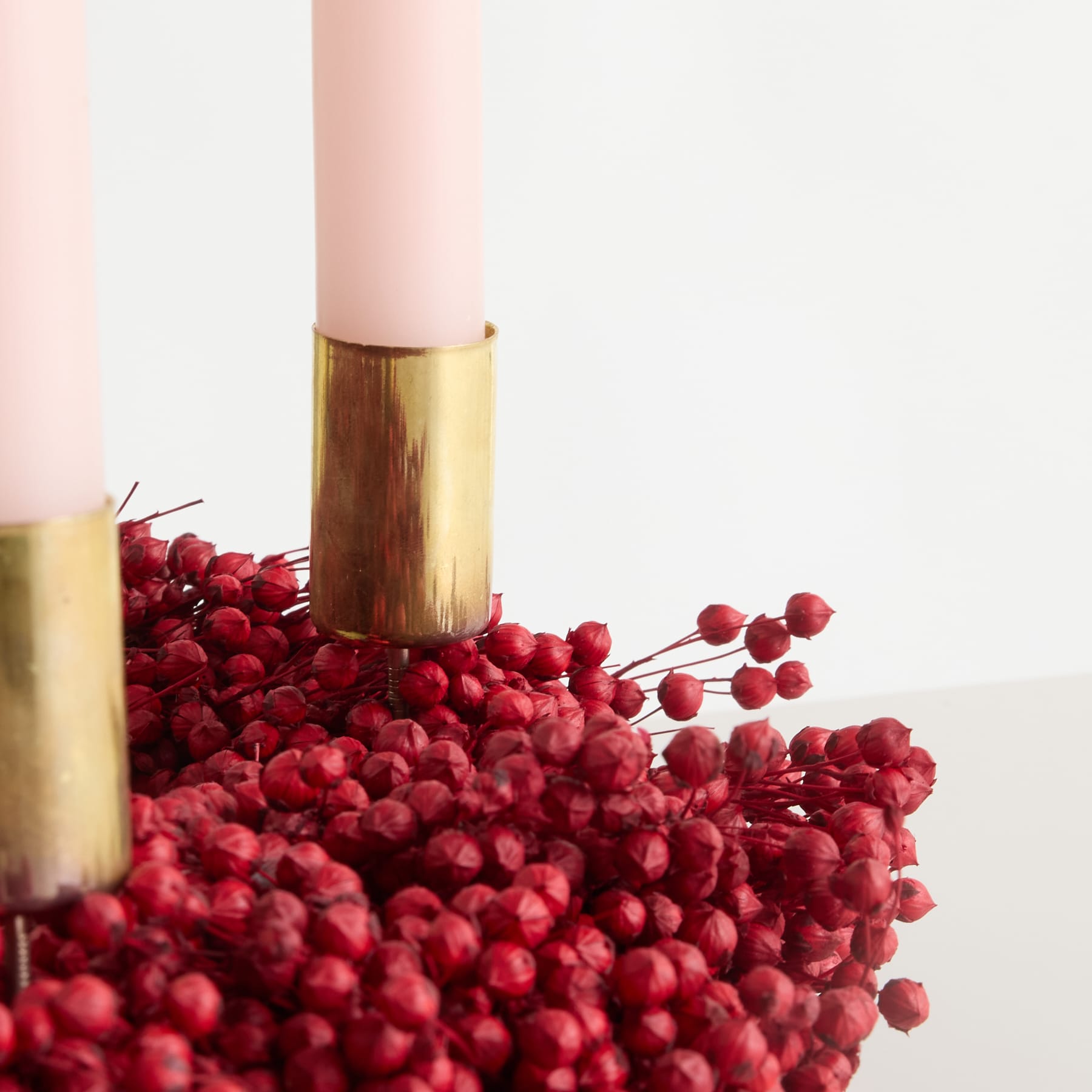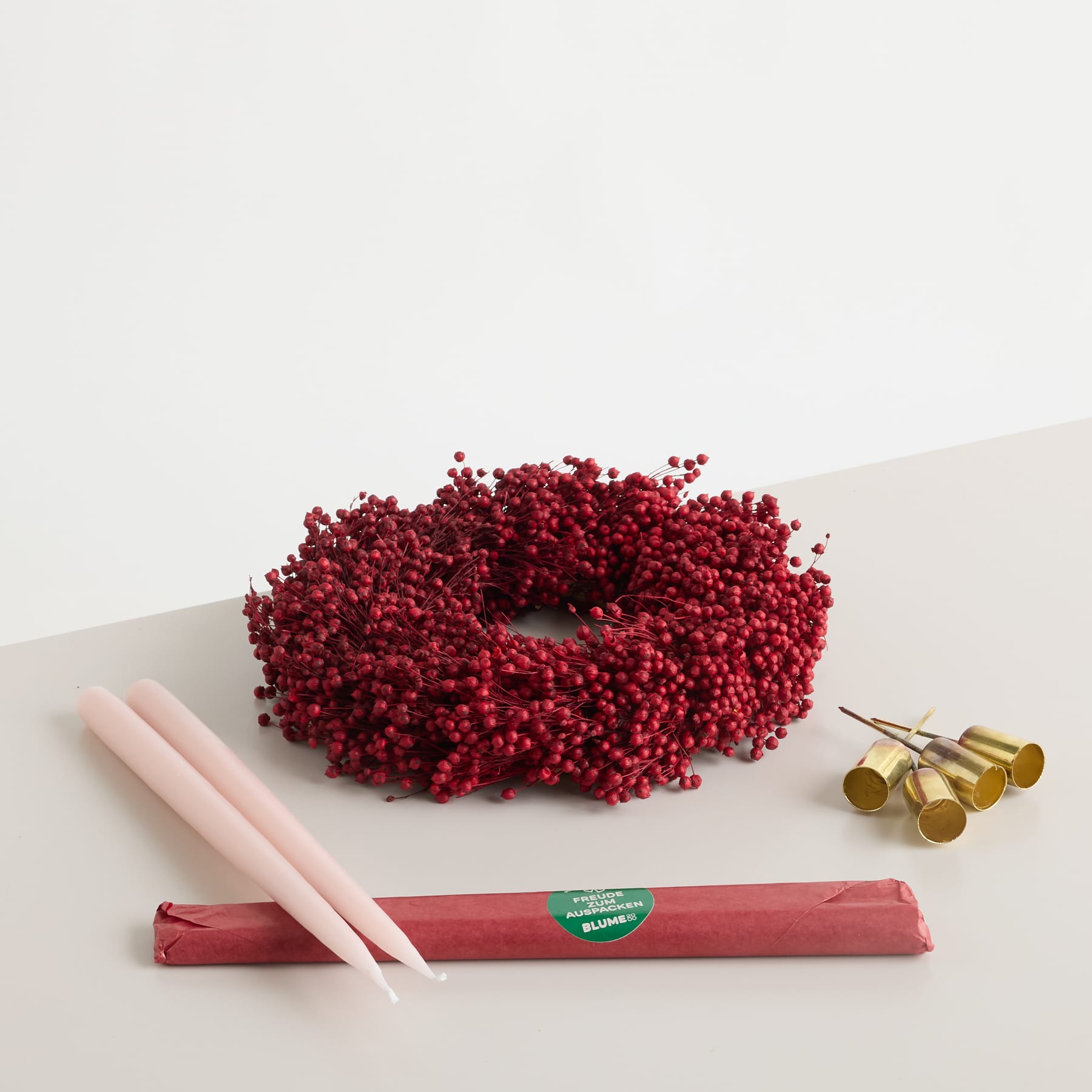 Mit unserem Adventskranz Pink Pearl zauberst du eine bezaubernde Atmosphäre voller Eleganz und Anmut in dein zu Hause. Das Set beinhaltet einen Flachskranz mit einem Durchmesser von 30 cm, silber / goldfarbene Kerzenhalter und vier handgezogene, zarte roséfarbene Stabkerzen mit einer Länge von 35 cm. Die Einzelbestandteile lassen sich mit Leichtigkeit zu einem wunderschönen Kranz arrangieren. Bitte beachte, dass der Flachs ein Naturprodukt ist und in Farbe und Form leicht variieren kann. Aus Sicherheitsgründen ist es wichtig, stets eine feuerfeste Unterlage zu verwenden und brennende Kerzen immer im Blickfeld zu behalten. Adventskranz Pink Pearl ist nicht nur eine festliche Dekoration, sondern auch ein echtes Highlight. Erwecke die Vorfreude auf Weihnachten in einem zauberhaften rosa Glanz!